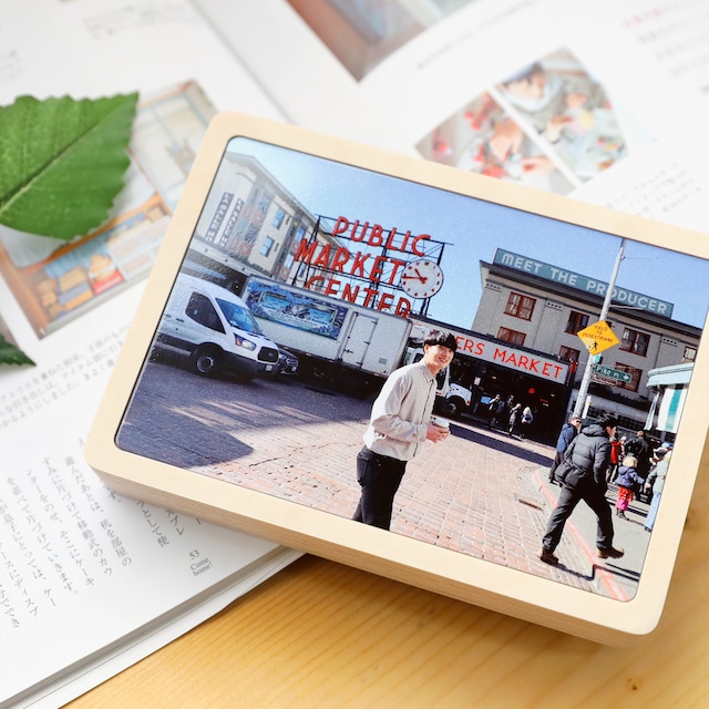 こちらは、しっかりとした厚みのある木製のフレームに入ったタイプのフォトスタンドです。