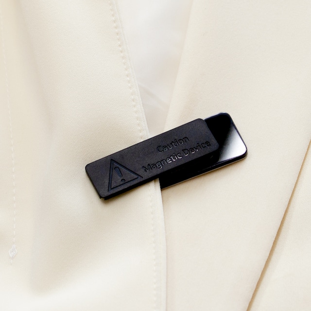 服に穴を開ける必要がなく、強力な磁石なのでスーツでもガッチリ固定できます。