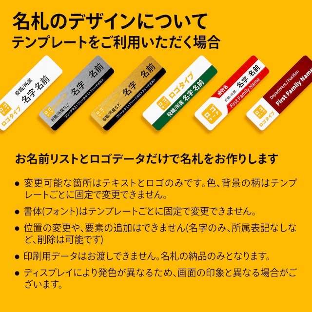 ・デザインデータの送付・納品(名札本体のみの納品となります)